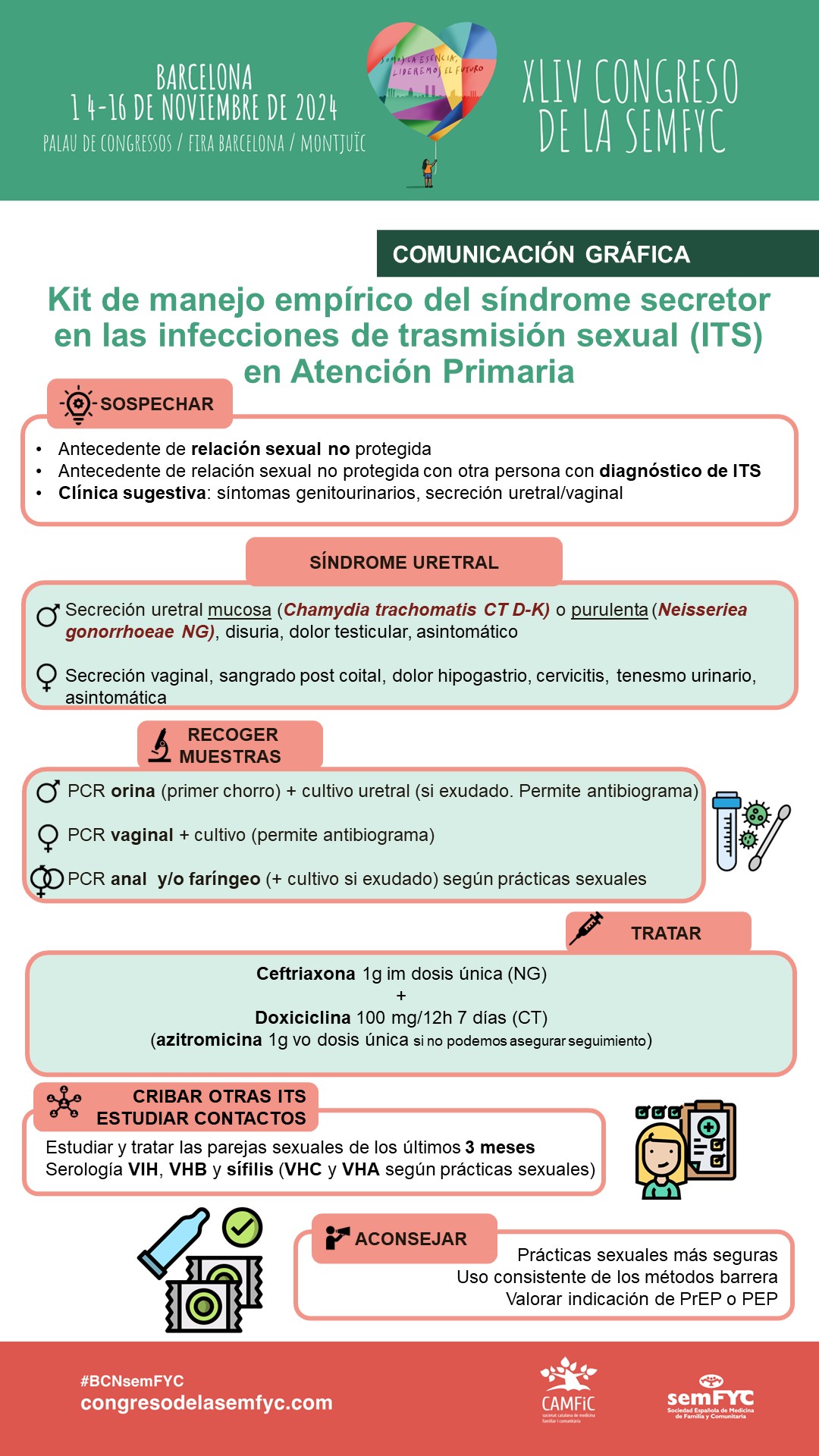 Con el KIT de manejo de las ITS que presentan síndrome secretor pretendemos estandarizar y facilitar la detección, diagnóstico, cribaje, tratamiento y seguimiento de las principales ITS que vemos en la consulta de AP.