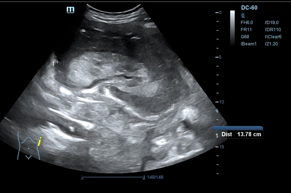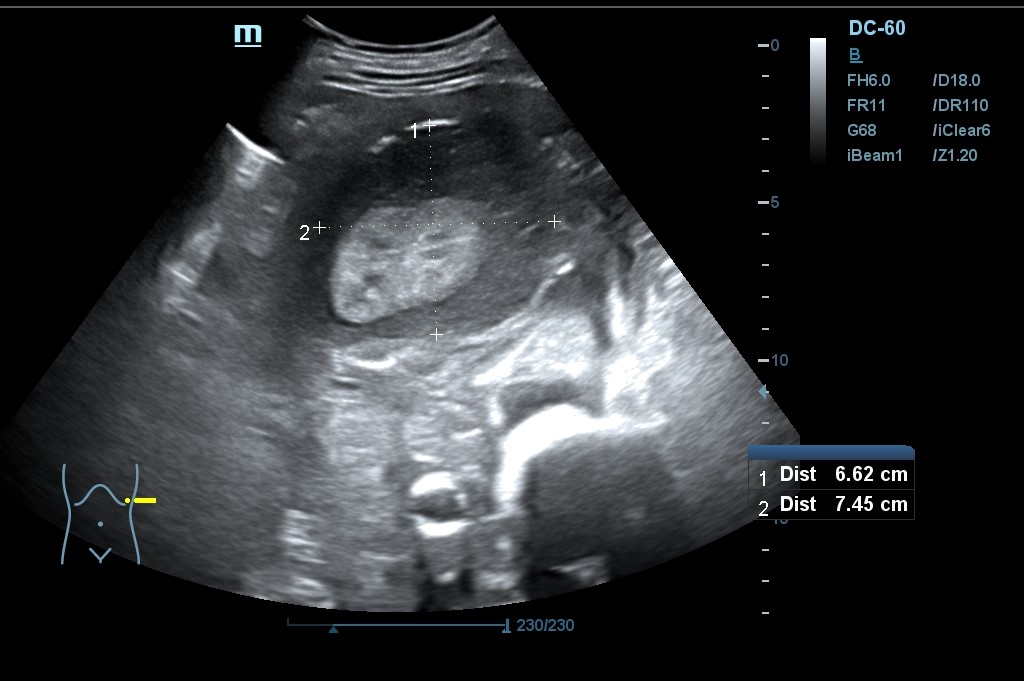 Hallazgo de lo que impresiona de nefromegalia izquierda de aproximadamente 14 cm con hidronefrosis bilateral grado 2.