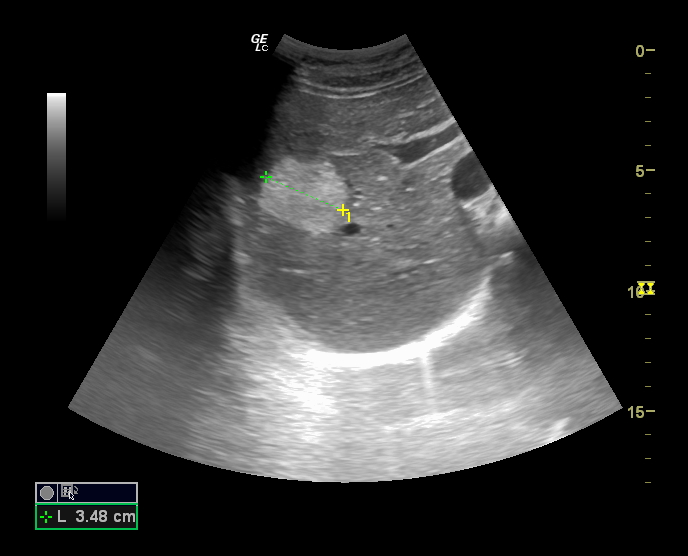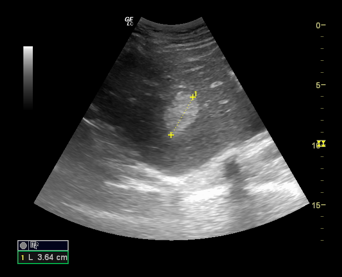 Mujer de 34 años sin antecedenters de interés y sin tratamientos crónicos. Acude a consulta para seguimiento de hemangiomas hepáticos detectados en 2015 de forma casual en ecografía abdominal al realizar estudio por diarreas crónicas por parte de digestivo. Dado que se trata de una lesión benigna sin criterios de intervención quirúrgica en el momento del diagnóstico se decide realizar seguimientos ecográficos. En el centro de Salud hay acceso a ecógrafo y su médico de Atención Primaria realiza ecografías de forma rutinaria por lo que se decide realizar el seguimiento desde la propia consulta con medición de lesiones de forma periódica, realizando derivación en caso de crecimiento con criterios de intervención.