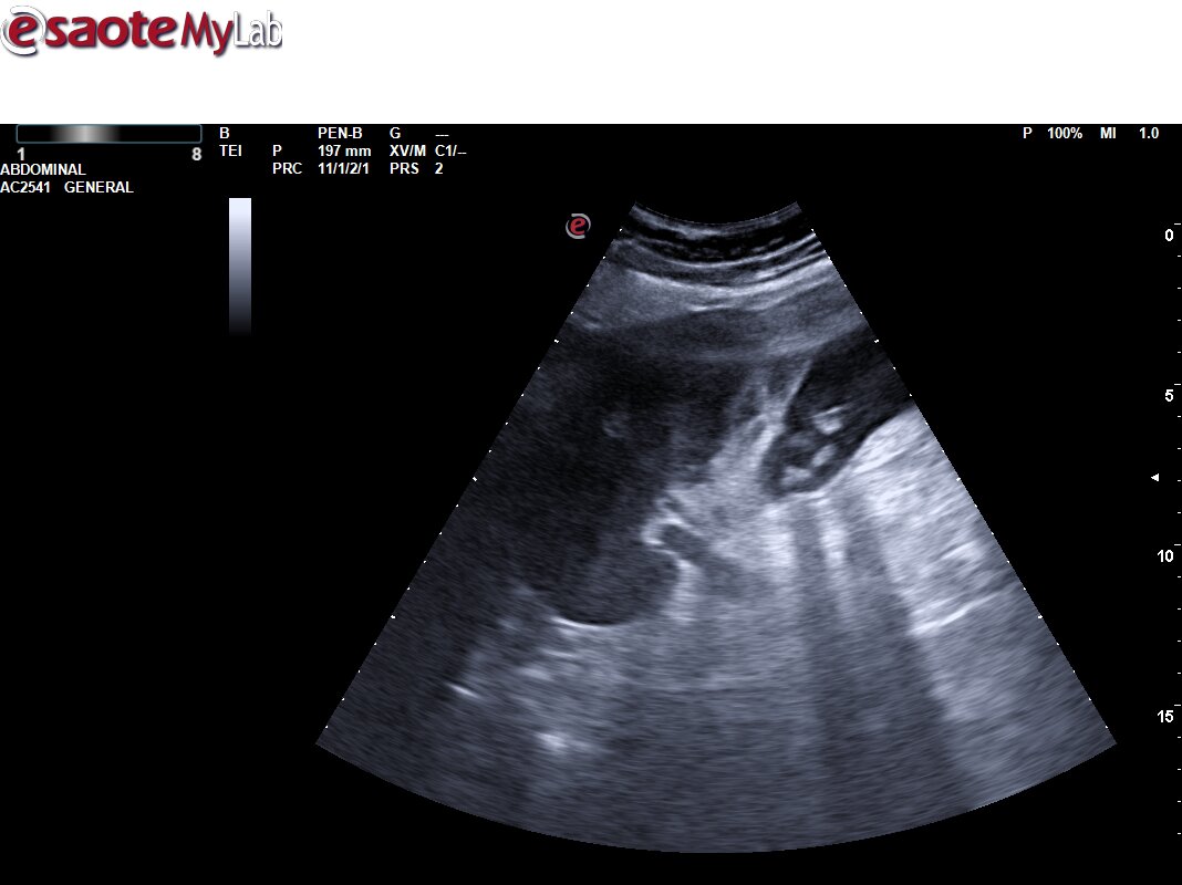 Ante un cuadro poco florido de dolor abdominal y la reticencia inicial de la paciente a acudir al hospital por la escasa sintomatología, la realización de la ecografía nos permite un diagnóstico inmediato y de certeza para poder manejar con mayor seguridad un cuadro urgente.