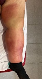 JC: Linfangitis en muslo izquierdo secundaria a celulitis de pierna izquierda.